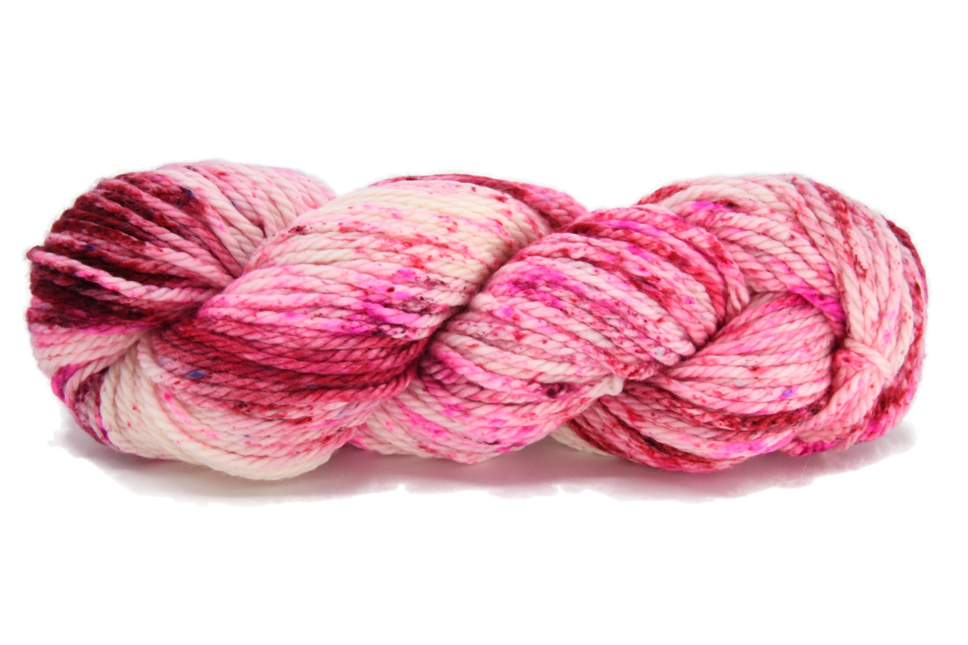 Let your creativity soar as you work with this beautiful candy hearts colorway. With this bright pink speckled yarn. Let its mesmerizing bright pink speckled colors inspire your next knitting project and add a touch of sweetness to your creations. Grab a skein today and let your creativity run wild with our irresistible candy hearts yarn!